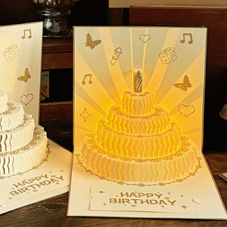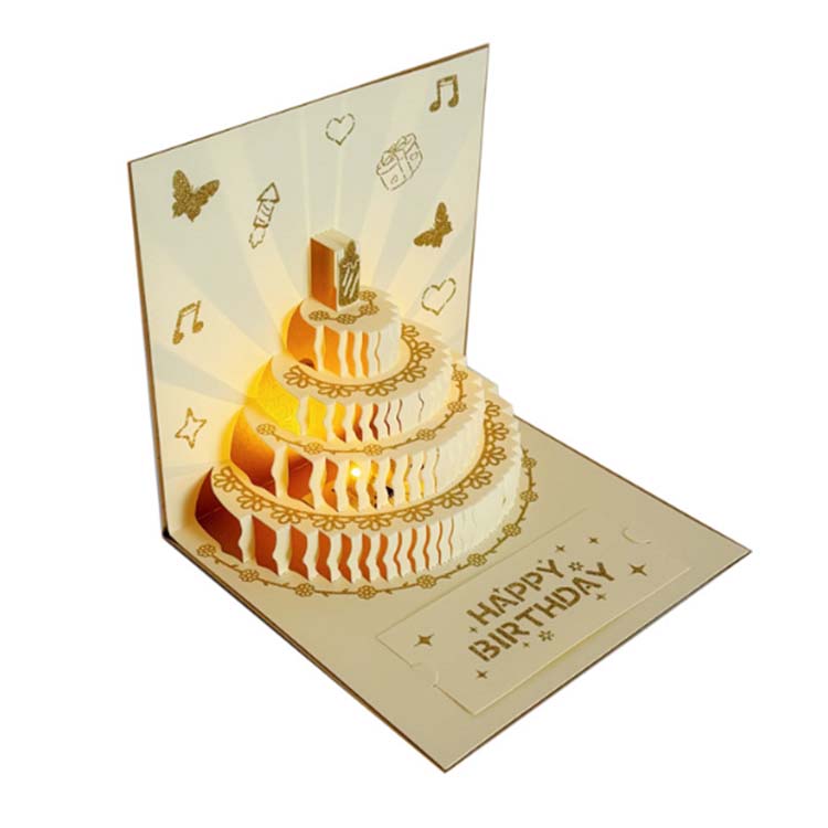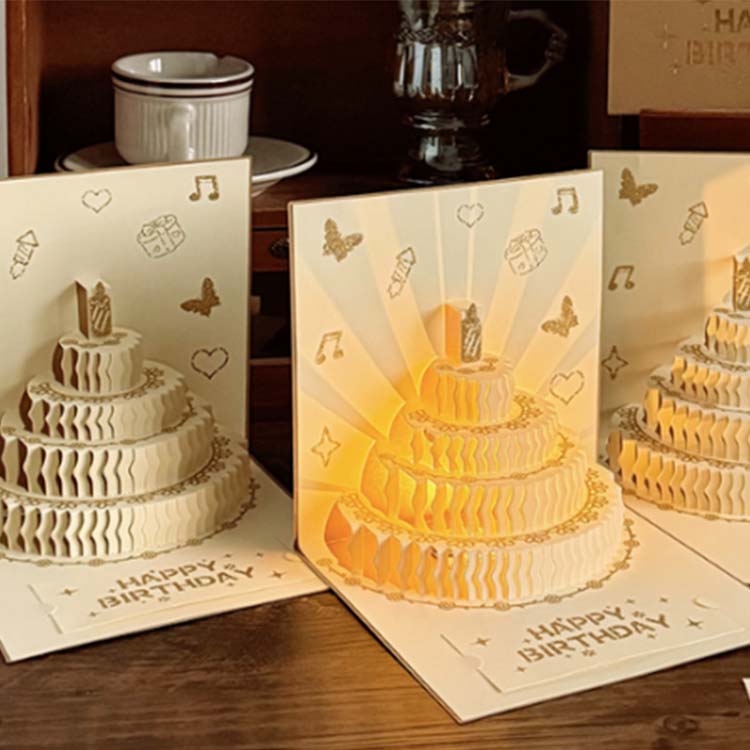 3 डी बर्थडे कार्ड ग्रीटिंग कार्ड श्रेणी में एक नया उत्पाद है। पर्यावरण के अनुकूल और सुरक्षित सामग्रियों से निर्मित, इसमें तीन आयामी आकार और आंतरिक प्रकाश और संगीत प्रभाव शामिल हैं। कॉम्पैक्ट और पोर्टेबल, इसमें एक लिफाफा, एक कार्ड और एक छोटा कार्ड होता है। यह एक व्यापक जन्मदिन कार्ड है जो क्लासिक और आधुनिक तत्वों को मिश्रित करता है।