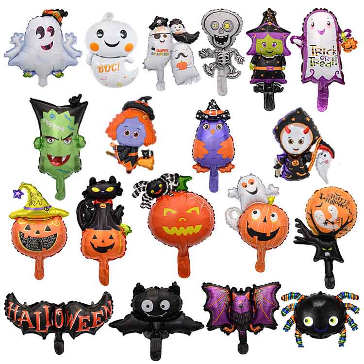 यह एल्यूमीनियम फिल्म बैलून क्लासिक हेलोवीन तत्वों जैसे कि खोपड़ी, कद्दू लालटेन, चमगादड़, मकड़ियों, आदि को एक साथ लाता है। कार्टून का आकार प्यारा और थोड़ा अजीब है। मिनी आकार आसानी से एक मजबूत उत्सव का माहौल बना सकता है चाहे वह अकेले लटका हुआ हो या संयोजन में रखा गया हो।