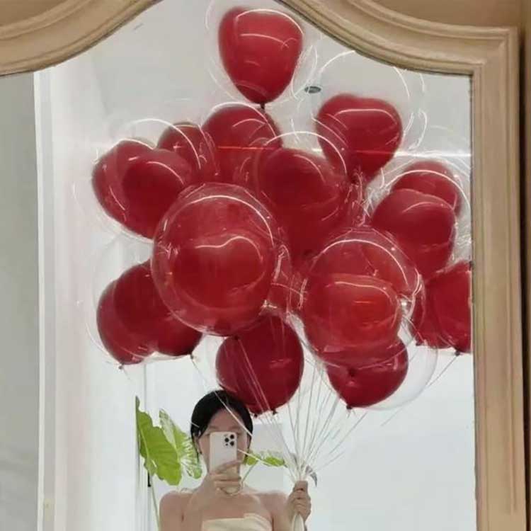 1.रंगीन दिल के आकार और गोल लेटेक्स गुब्बारे उपलब्ध हैं।