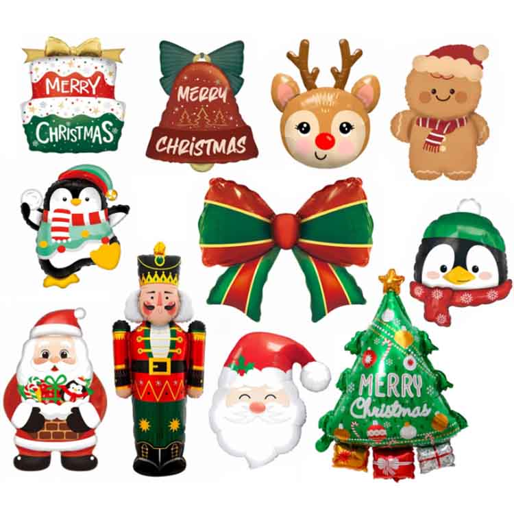क्रिसमस एल्यूमीनियम फ़ॉइल गुब्बारे अपने डिज़ाइन में क्रिसमस तत्वों को शामिल करते हैं। सांता क्लॉज़, क्रिसमस ट्री, स्नोफ्लेक्स और घंटियों जैसी क्लासिक आकृतियों में उपलब्ध, ये गुब्बारे "मेरी क्रिसमस" के नारों से सजे हैं। रंगों में क्रिसमस के तत्व शामिल हैं, जिनमें मुख्य रूप से क्रिसमस-थीम वाले रंग जैसे लाल, हरा, सोना और चांदी शामिल हैं, जो उत्सव का माहौल बनाते हैं। छोटे 30 सेमी से लेकर विशाल 100 सेमी तक आकारों की एक विस्तृत श्रृंखला में उपलब्ध, वे विभिन्न प्रकार के सजावटी परिदृश्यों और जरूरतों को पूरा करते हैं।