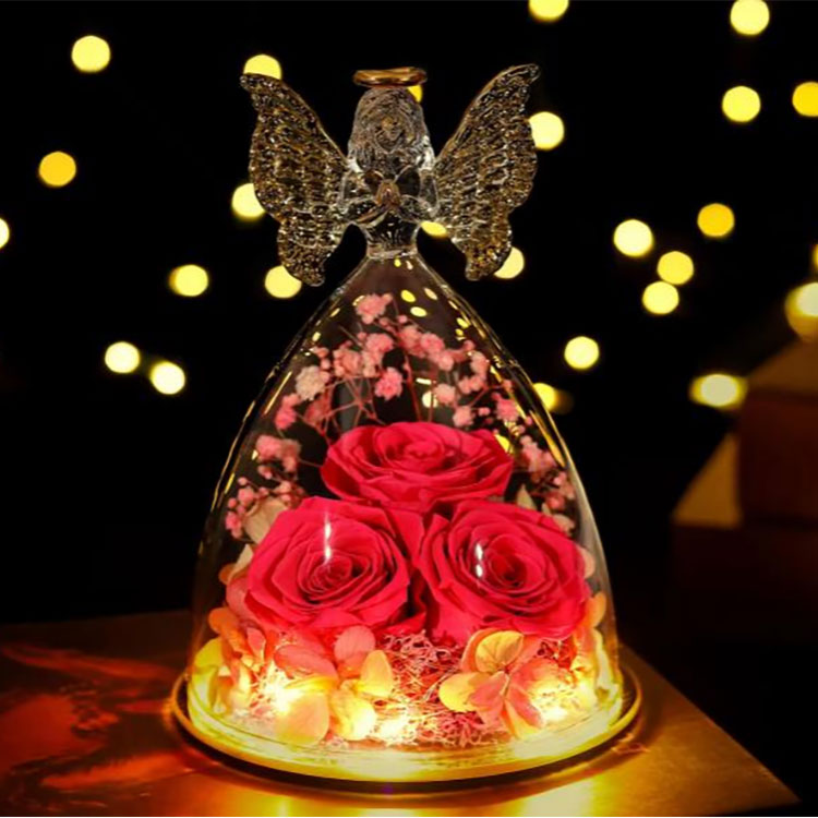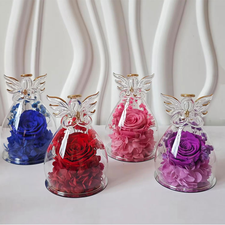 हमारा ग्लास एंजेल संरक्षित फूल उपहार समर्थन OEM और ODM।