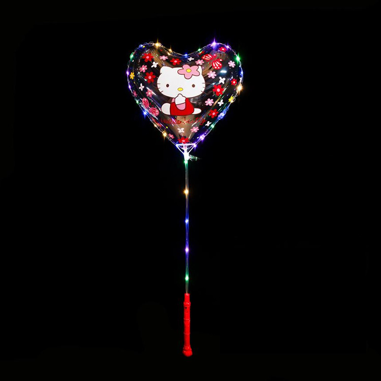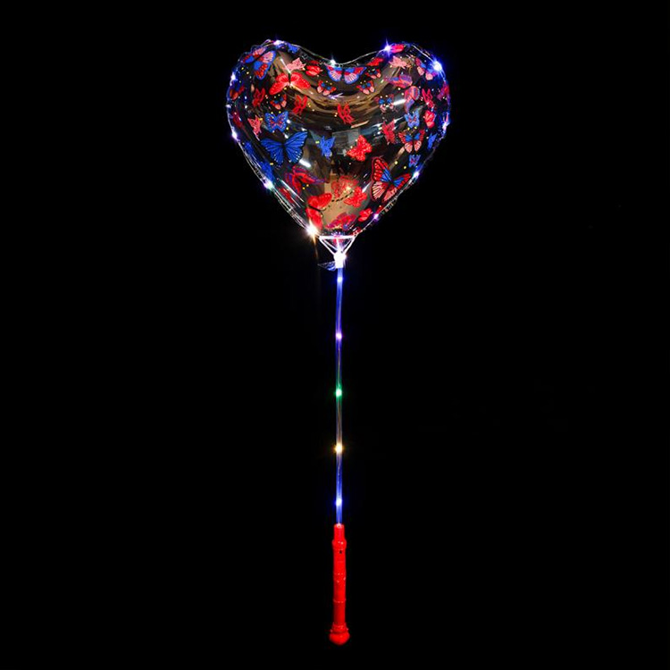 हम अक्सर दिल के आकार के मुद्रित बोबो गुब्बारों को हैंडल या एलईडी लाइट बॉक्स के साथ जोड़ते हैं। आप अपनी आवश्यकतानुसार प्रकाश का रंग चुन सकते हैं।