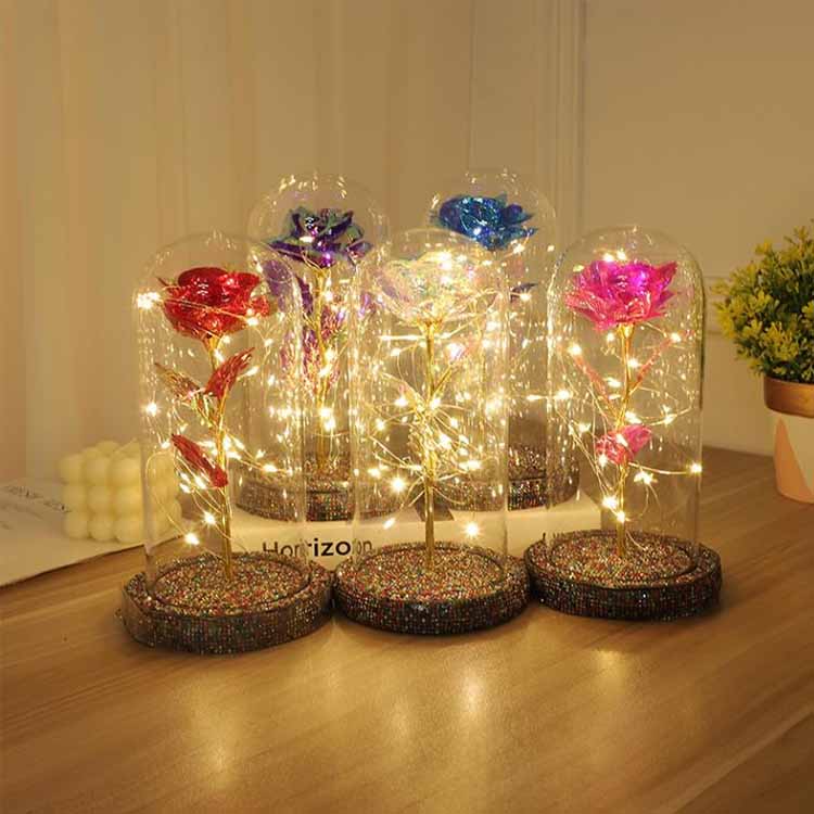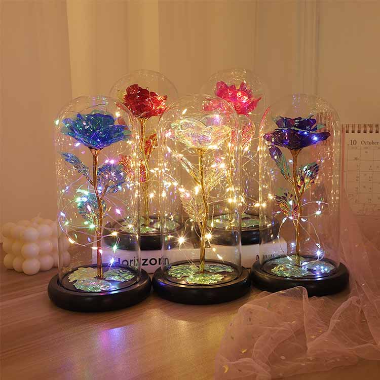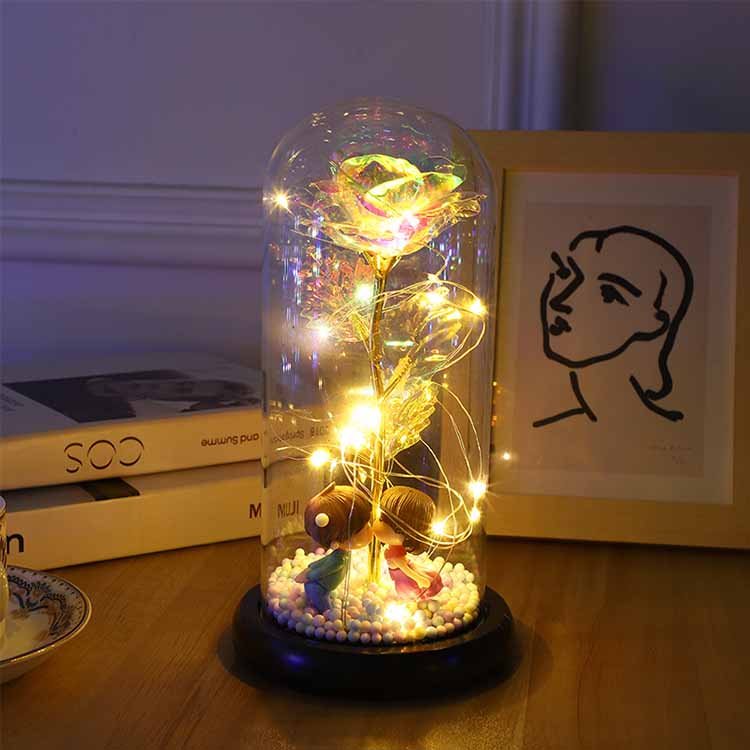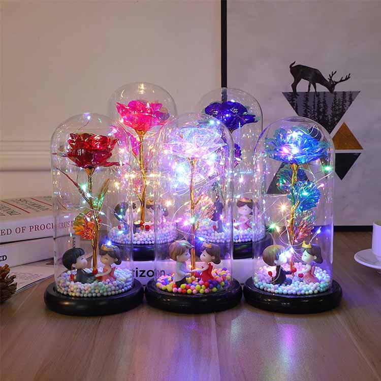 सुरक्षात्मक आवरण के अंदर एलईडी 24K ग्लास गुलाब, हमारे पास कई गुड़िया और खिलौने हैं। ग्राहक अपनी पसंदीदा गुड़िया और अपनी पसंद के फूलों का रंग चुन सकते हैं। हम आपकी आवश्यकताओं के अनुसार उन्हें अनुकूलित कर सकते हैं।