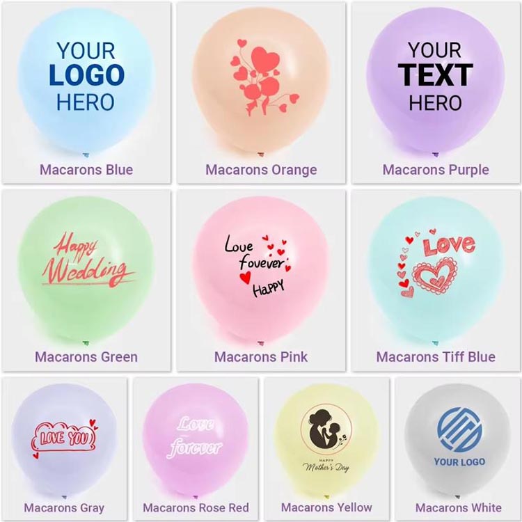 अपने ब्रांड की पहचान को विशिष्ट बनाएं। हमारी उन्नत मुद्रित लेटेक्स गुब्बारे तकनीक आपके लोगो या डिज़ाइन के लिए छह रंगों तक का समर्थन करती है, जिससे रंग प्रतिबंध समाप्त हो जाते हैं। चाहे वह ग्रेडिएंट हो या जटिल ग्राफिक्स, हम इसे आप तक पहुंचा सकते हैं। हम एक तरफा, दो तरफा और पांच तरफा प्रिंटिंग की पेशकश करते हैं। आप अपनी आवश्यकताओं के अनुरूप अपना लोगो चुन सकते हैं।