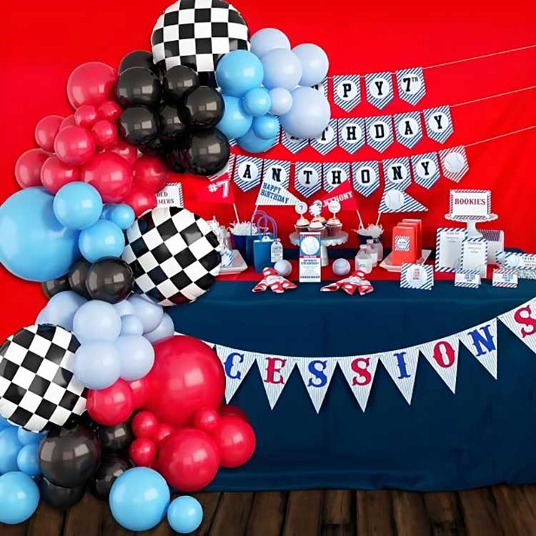 रेसिंग थीम बैलून आर्क डेकोरेशन किट एक सजावटी समाधान है जिसे विशेष रूप से रेसिंग-थीम वाली पार्टियों, कार्यक्रमों और जन्मदिन पार्टियों के लिए डिज़ाइन किया गया है। यह उत्पाद कार रेसिंग की थीम पर केंद्रित है। काले, चांदी, नीले और लाल लेटेक्स गुब्बारे, साथ ही कारों के मॉडल और रेसिंग सहायक उपकरण जोड़कर, यह सजावट के रूप में एक आर्क आकार बनाने का अंतिम परिणाम प्राप्त करता है, जिससे आयोजन स्थल के लिए एक भावुक और हर्षित माहौल बनता है।