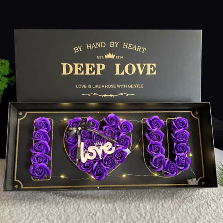 साबुन का फूल, एलईडी लाइट, प्रेम चिन्ह, पैकेजिंग बॉक्स |