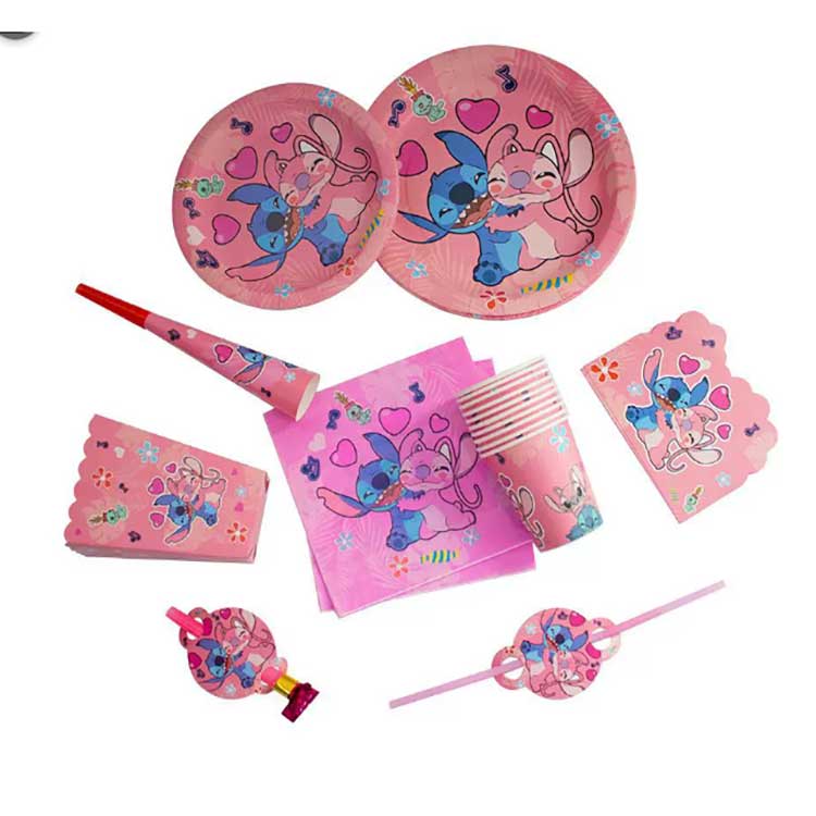 एक स्टिच डिस्पोजेबल प्लेट सेट में निम्नलिखित उत्पाद शामिल हैं: 7 इंच प्लेट (10 पीसी / बैग), 9 इंच प्लेट (10 पीसी / बैग), नैपकिन (20 पीसी / बैग), पेनांट (10 पीसी / बैग), रिटर्न गिफ्ट बैग (10 पीसी / बैग), पॉपकॉर्न बॉक्स (6 पीसी / बैग), ब्लोइंग ड्रेगन (6 पीसी / बैग), पेपर टोपी (6 पीसी / बैग), पेपर कप (10 पीसी / बैग), हॉर्न (6 पीसी / बैग), स्ट्रॉ (10 पीसी/बैग), निमंत्रण कार्ड (10 पीसी/बैग), मास्क (10 पीसी/बैग), चम्मच, कटलरी (10 पीसी/बैग), और मेज़पोश (1 पीसी/बैग)। सेट में 17 विभिन्न उत्पाद प्रकार हैं। ग्राहक अपनी ज़रूरतों को पूरा करने के लिए पूरा सेट खरीदना या आइटम का केवल एक हिस्सा चुनना चुन सकते हैं।